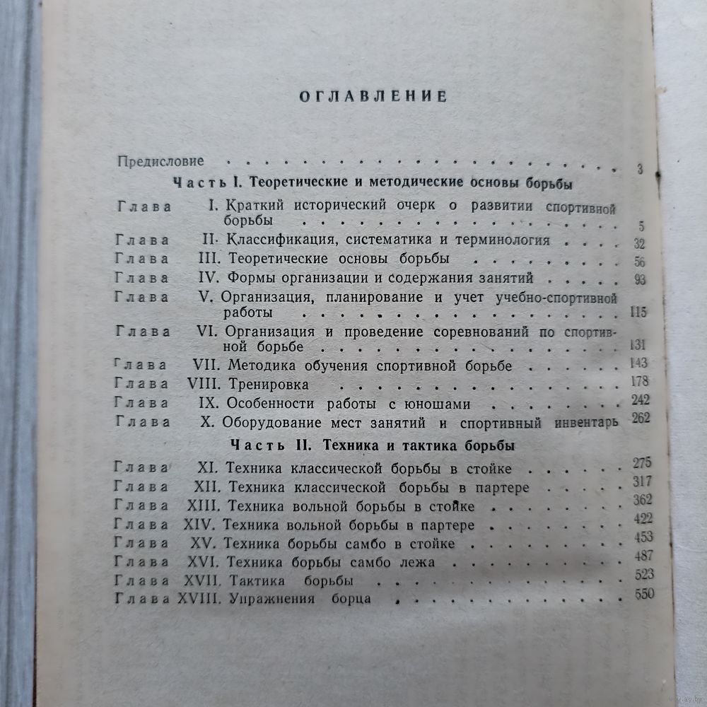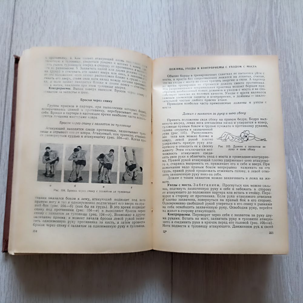 Тираж 30 000 экз. Учебник для институтов физической культуры. Учебник составлен под руководством заслуженных тренеров СССР в соответствии с программами, утвержденными для высших физкультурных учебных заведений по спортивной борьбе (классической, вольной и самбо) Для более всестороннего и глубокого освещения различных вопросов техники и методики к составлению учебника привлечены лучшие специалисты по отдельным вопросам теории и практики спортивной борьбы.Много тактики по отдельным приемам.