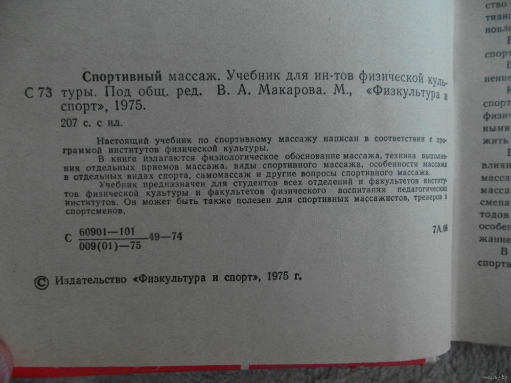 Настоящий учебник по спортивному массажу написан в соответствии с программой институтов физической культуры. В книге излагаются физиологическое обоснование массажа, техника выполнения отдельных приемов массажа, виды спортивного массажа, особенности массажа в отдельных видах спорта, самомассаж и другие вопросы спортивного массажа. Учебник предназначен для студентов всех отделений и факультетов физической культуры и факультетов физического воспитания педагогических институтов. Он может быть тажке полезен для спортивных массажистов, тренеров и спортсменов.