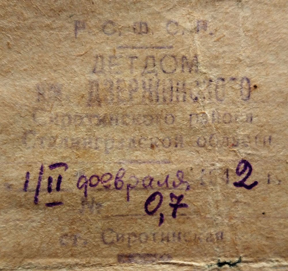Справка воспитанника детского дома. Сталинградская обл. 1942 г.