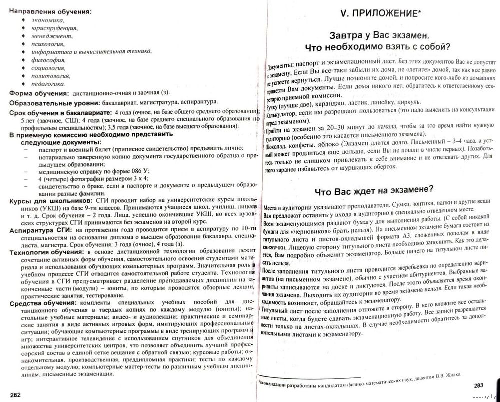 Справочник абитуриента для поступления в Высшие учебные заведения Республики Беларусь за 2003/2004 года