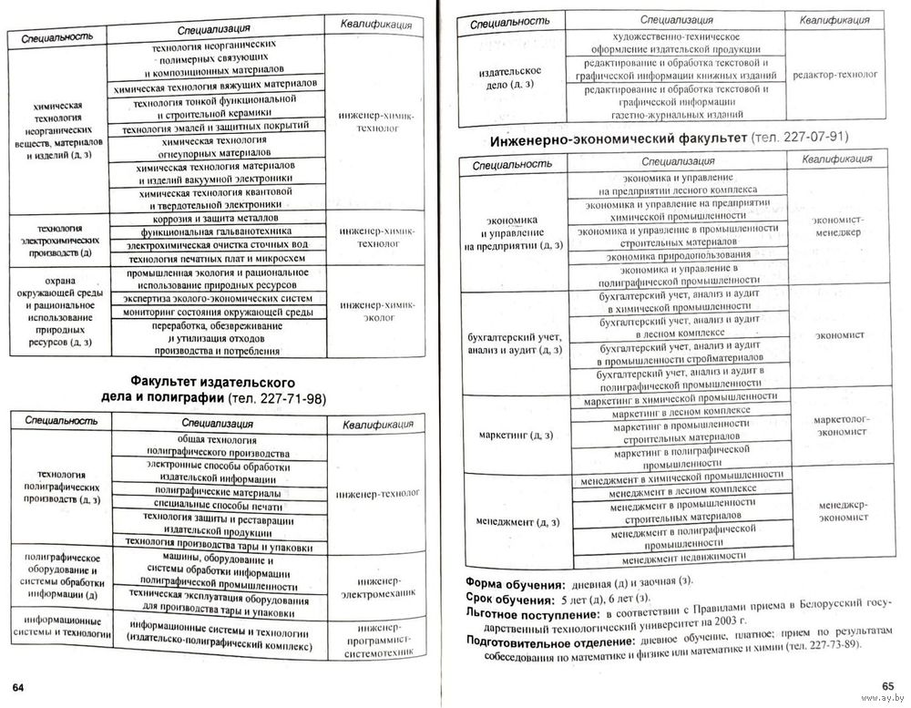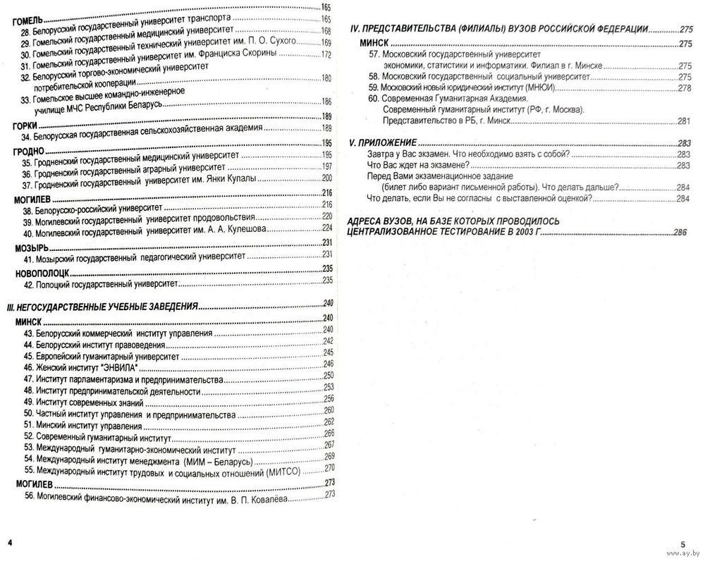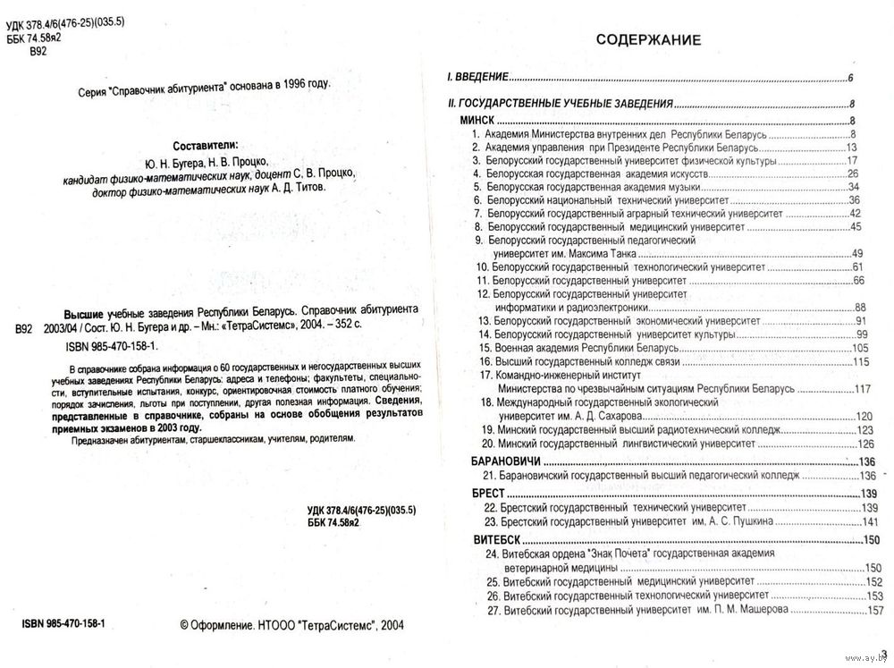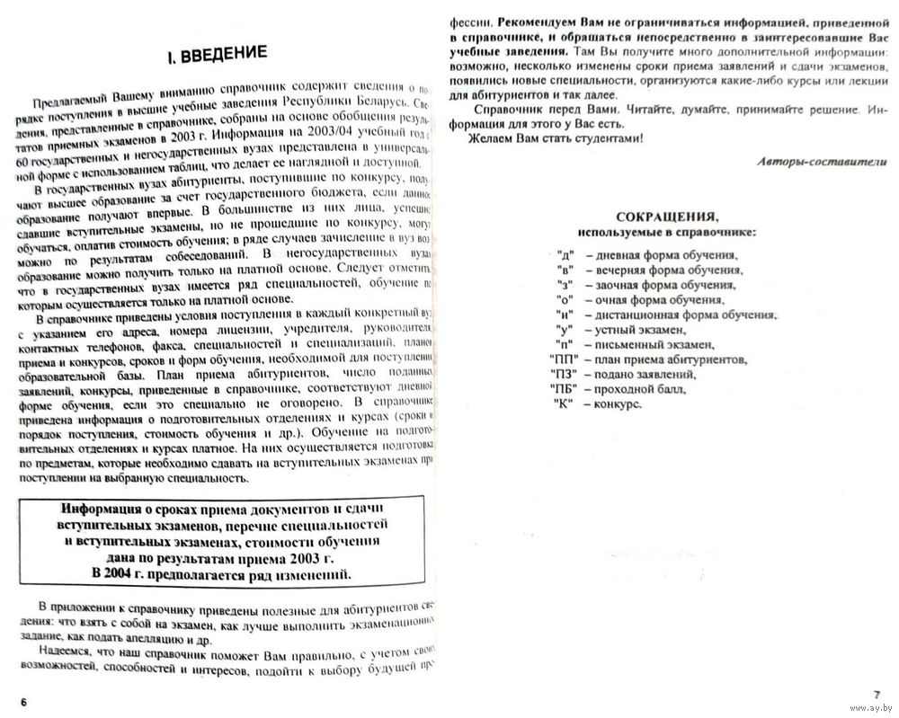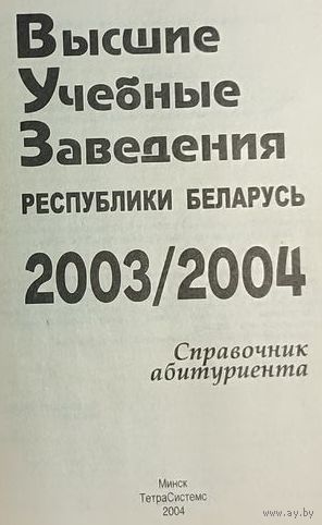 Справочник абитуриента для поступления в Высшие учебные заведения Республики Беларусь за 2003/2004 года