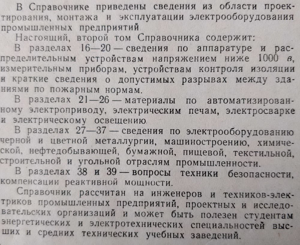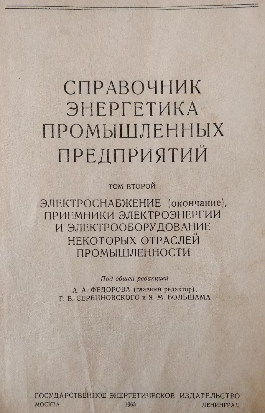 «Справочник энергетика промышленных предприятий», том 2: электроснабжение (окончание), приёмники электроэнергии и электрооборудование некоторых отраслей промышленности.