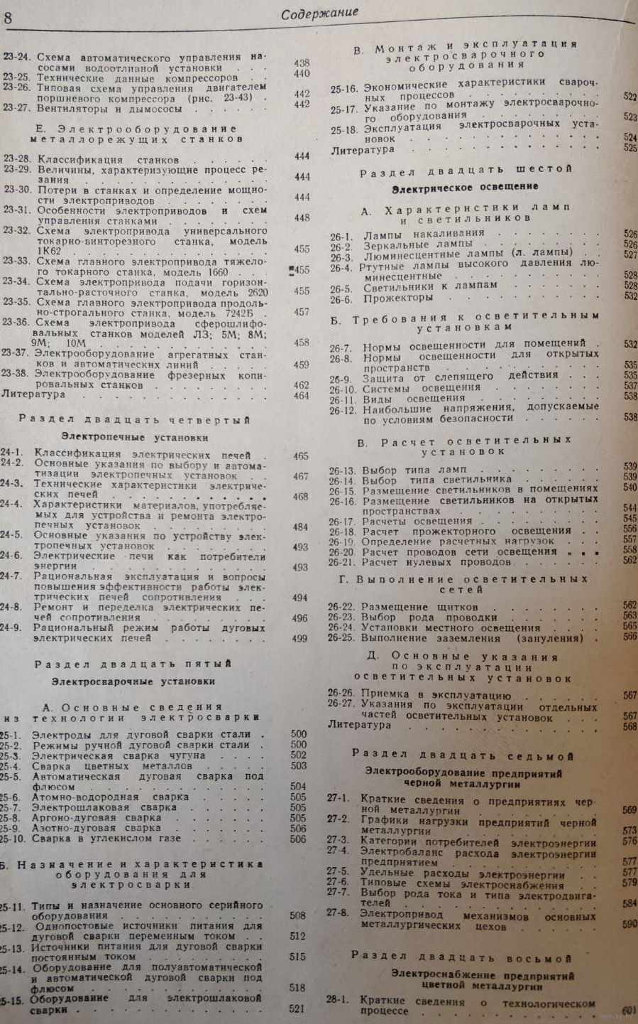 В разделах 21-26 – материалы по автоматизированному электроприводу, электрическим печам, электросварке и электрическому освещению.