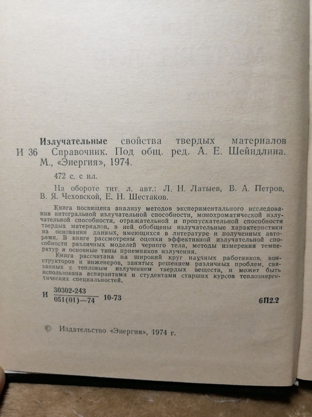 Книга рассчитана на широкий круг научных работников, конструкторов и инженеров, занятых решением различных проблем, связанных с тепловым излучением твердых веществ, и может быть использована аспирантами и студентами старших курсов теплоэнергетических специальностей.
