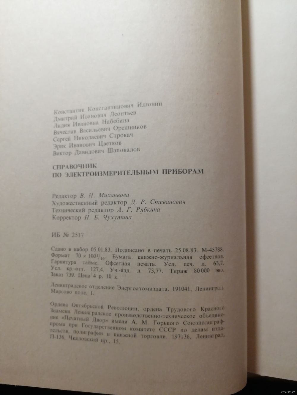 В книге приведены основные технические характеристики электроизмерительных приборов по всем номенклатурным группам в соответствии со Всесоюзным классификатором промышленной продукции. Описаны информационно-измерительные системы и измерительно-вычислительные комплексы. Второе издание вышло в 1977 г. Настоящее издание дополнено описанием новых приборов. Справочник предназначен для специалистов, работающих в области электроизмерительной техники.