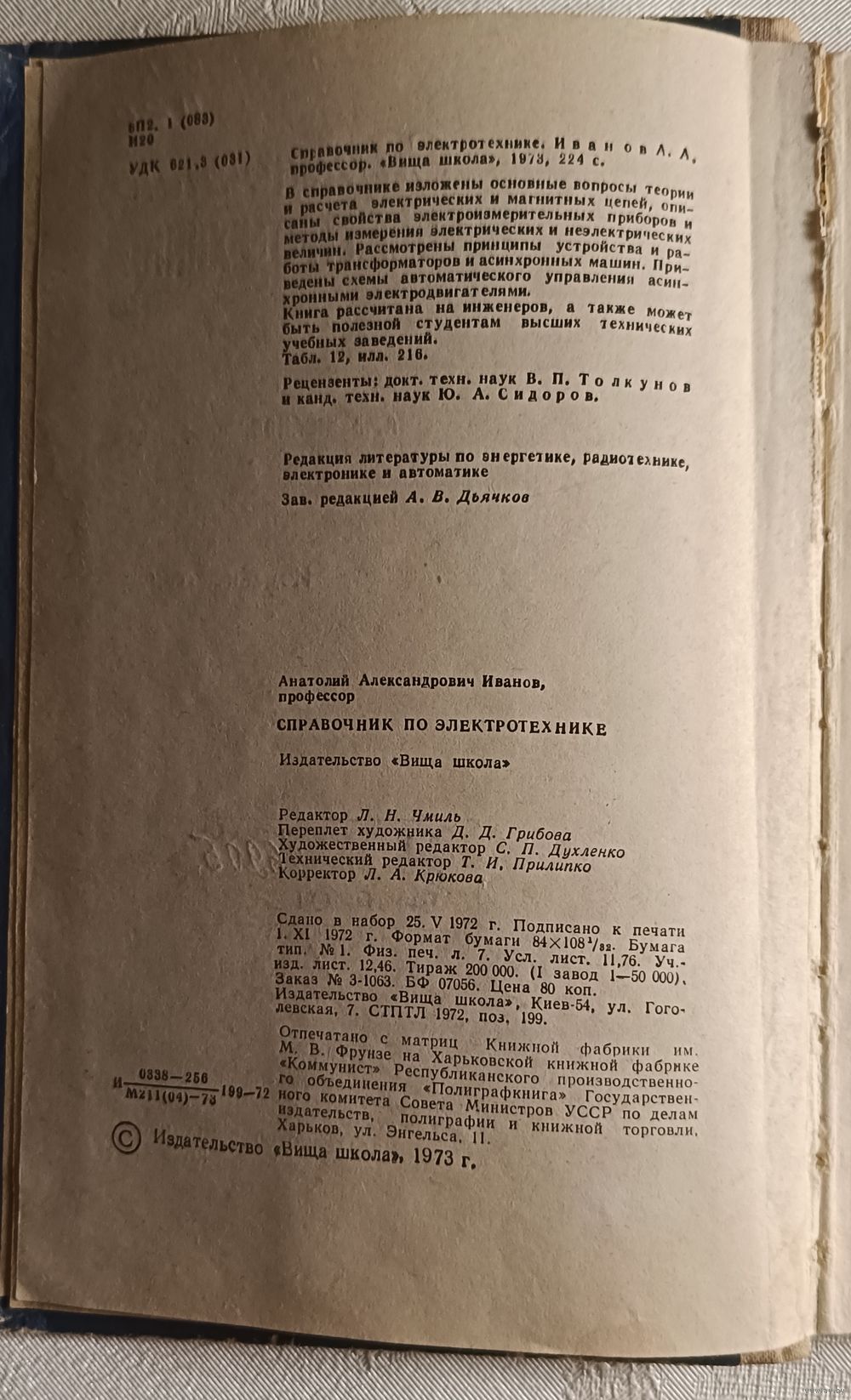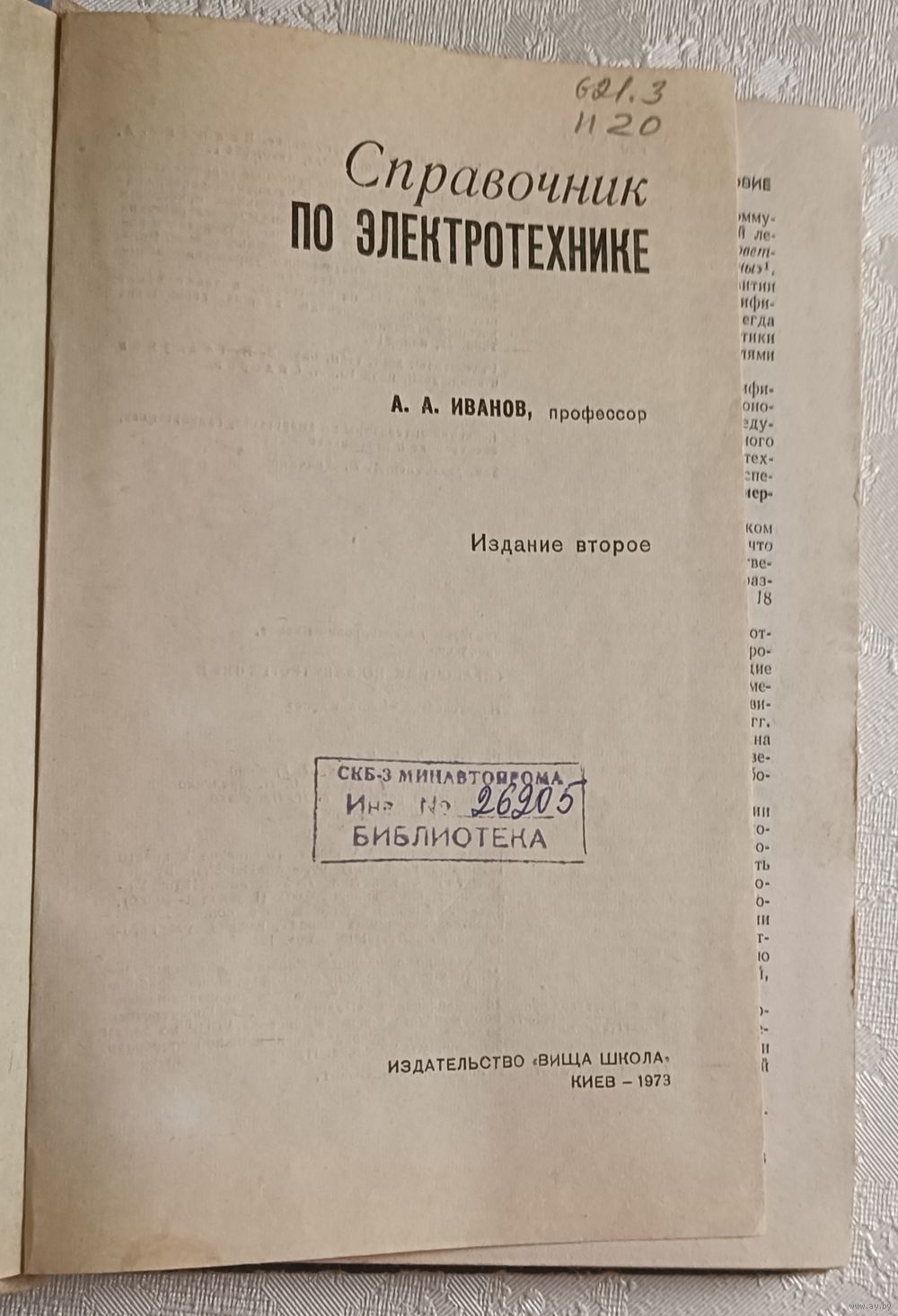 Справочник по электротехнике. Иванов А. А. профессор. «Вища школа», 1973, 224 с., твёрдый переплёт, обычный формат.