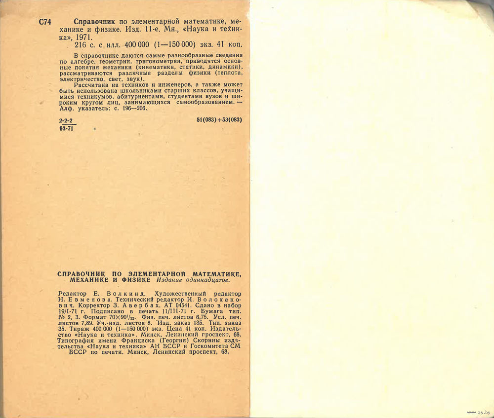 Издательство «Наука и техника». Минск, Ленинский проспект, 68. Типография имени Франциска (Георгия) Скорины издательства «Наука и техника» АН БССР и Госкомитета СМ БССР по печати. Минск,. Ленинский проспект, 68.