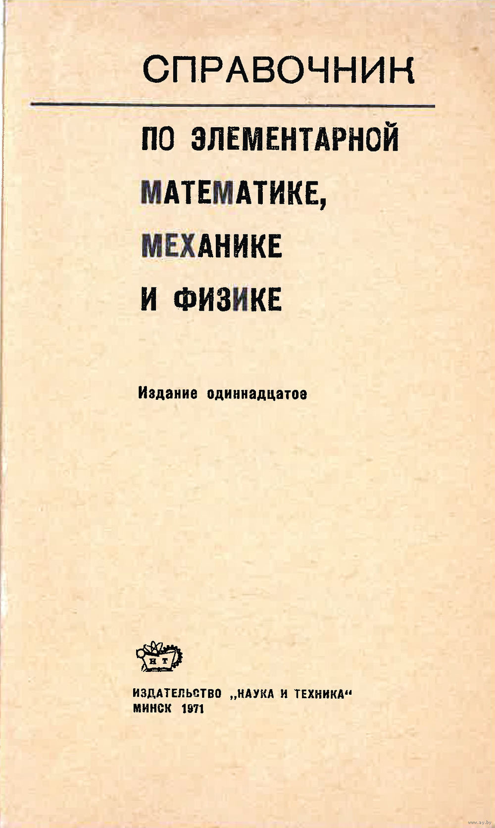 Справочник по элементарной математике, механике и физике. Изд. 11-е. Мн., «Наука и техника», 1971.