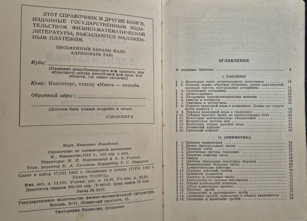 Выгодский Марк. М., Физматгиз, 1962 г.,
