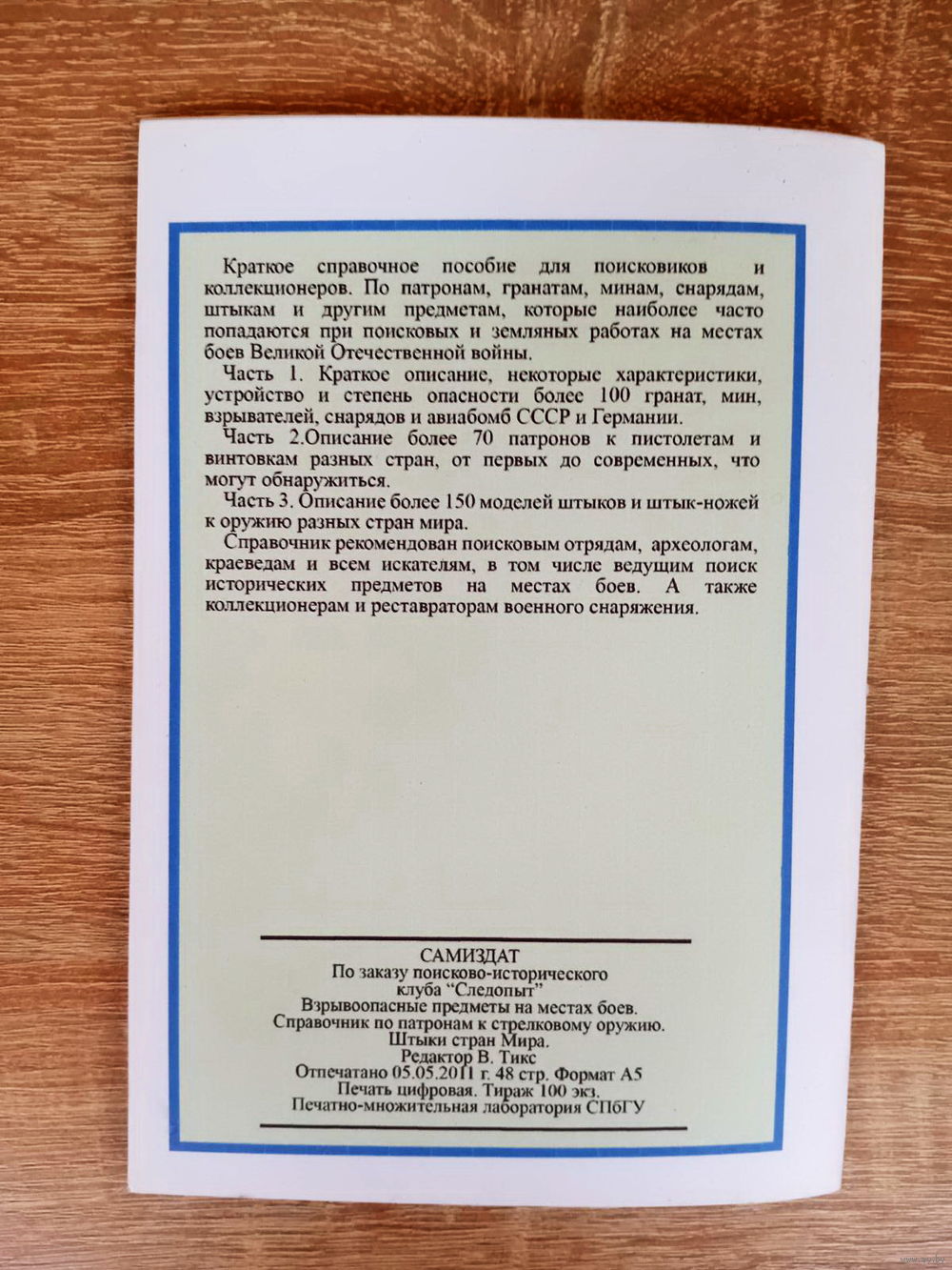 Справочник рекомендован поисковым отрядам, археологам, краеведам и всем искателям, в том числе коллекционерам и реставраторам снаряжения.