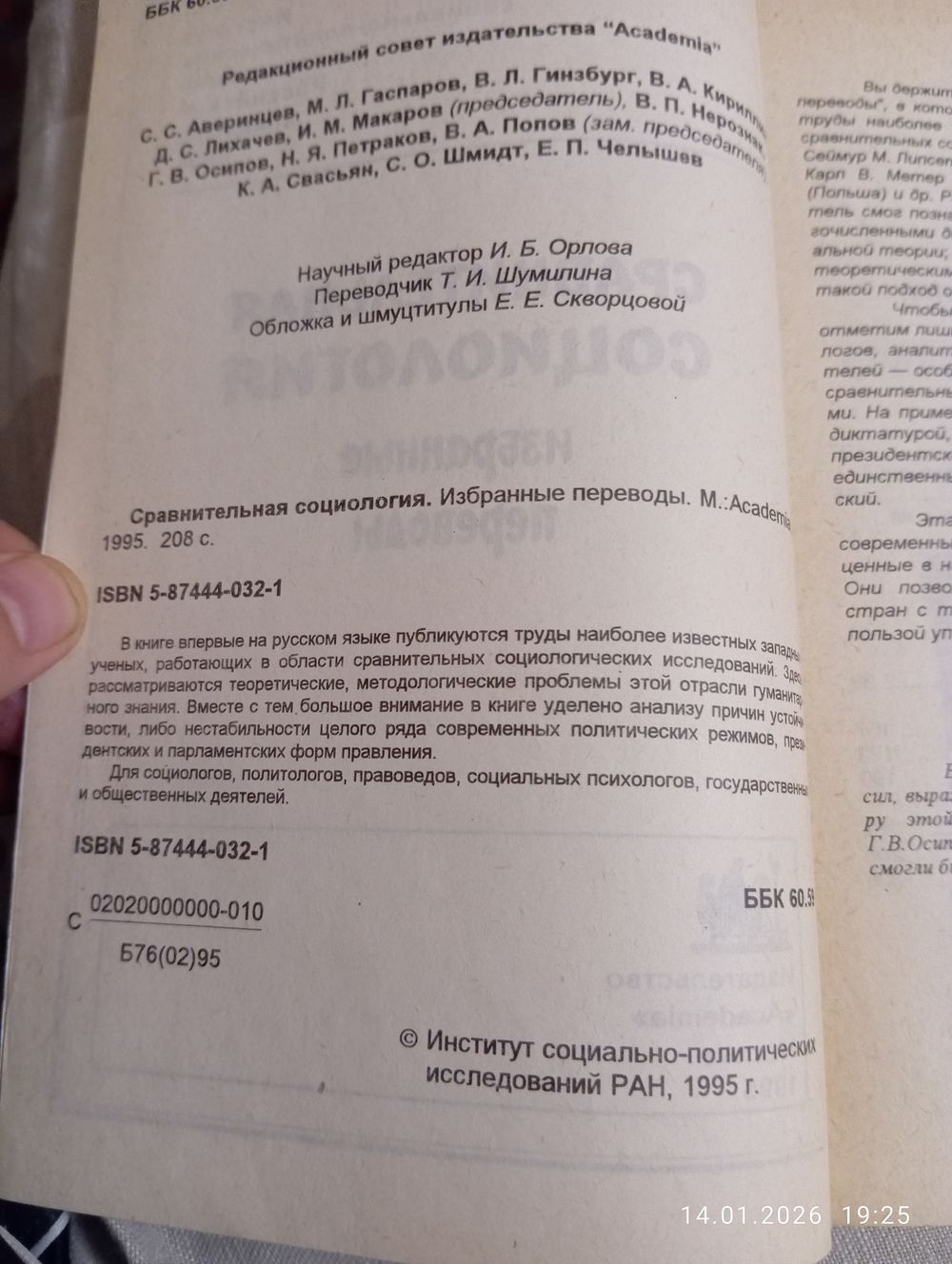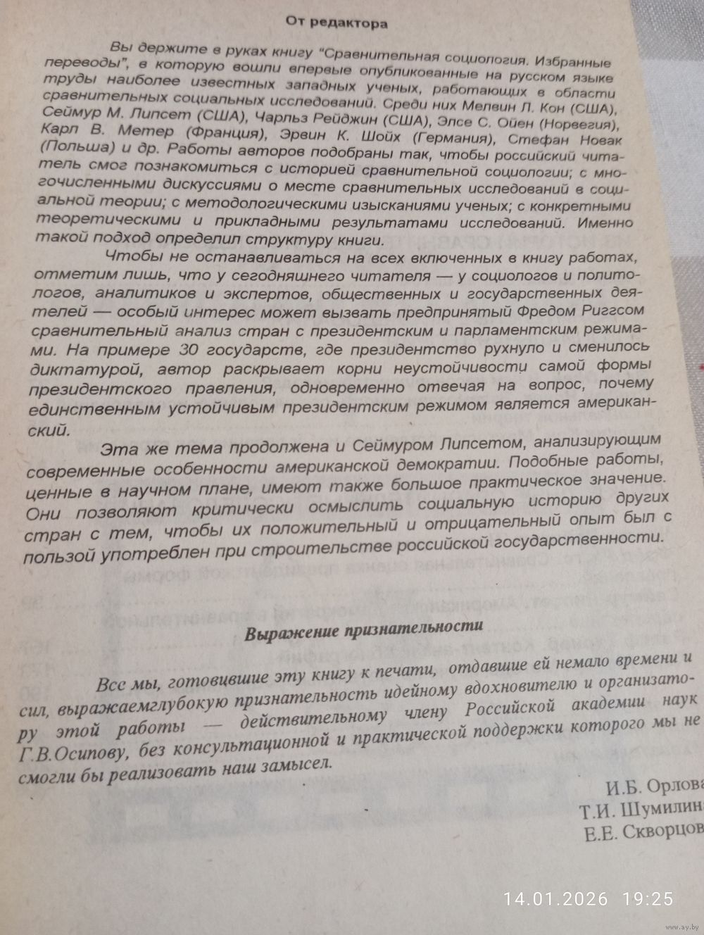 Сравнительная социология. Избранные переводы. Редкая. М. Академия 1995. В хорошем состоянии, мягкая обложка. 208с, тираж 1000(!). Возможность отправки Белпочтой, полная предоплата