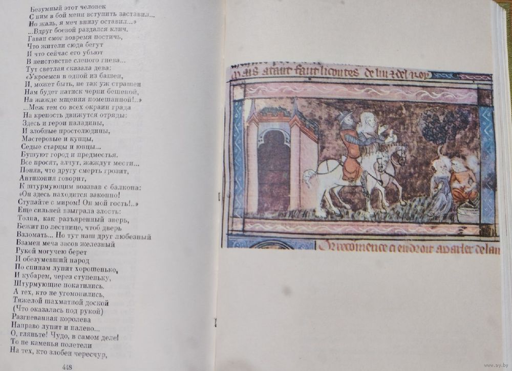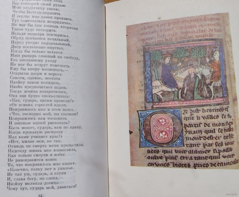 652 стр. Кретьен де Труа "Ивэйн, или Рыцарь со львом" (перевод В. Микушевича). "Роман о Тристане и Изольде" (перевод Ю. Стефанова). "Окассен и Николетта" (перевод Ал. Дейча). Вольфрам фон Эшенбах "Парцифаль" (перевод Л. Гинзбурга). Гартман фон Ауэ "Бедный Генрих" (перевод Л. Гинзбурга). Цветные иллюстрации миниатюр готических рукописей XIII – XIV вв.