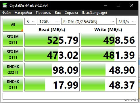 Запись случайных блоков 4 Кбайт (QD32): 83 000 IOPS