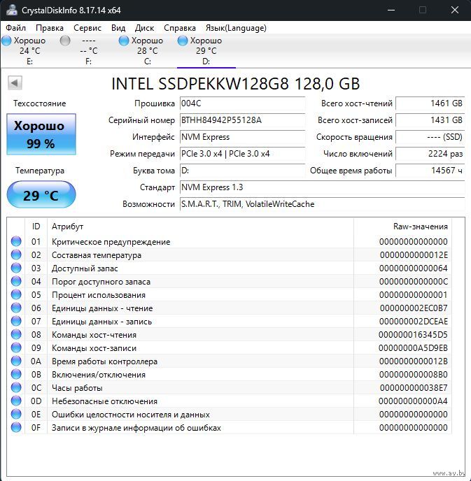 | Объём | 128 Гб |