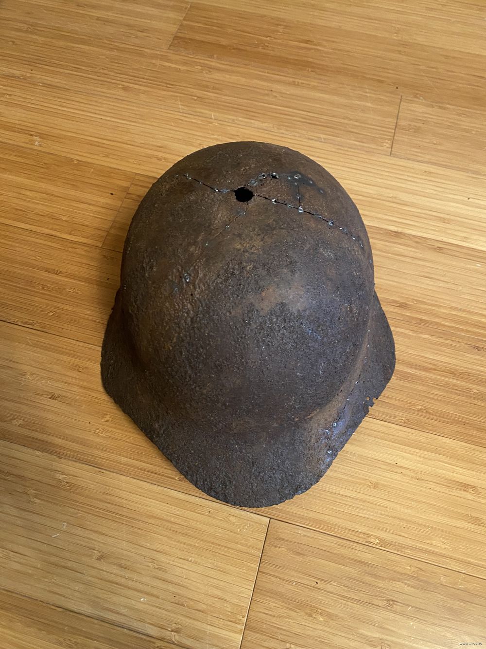 Без гребня. Металл крепкий, по трещинам прихвачен сваркой. Годится на реставрацию.