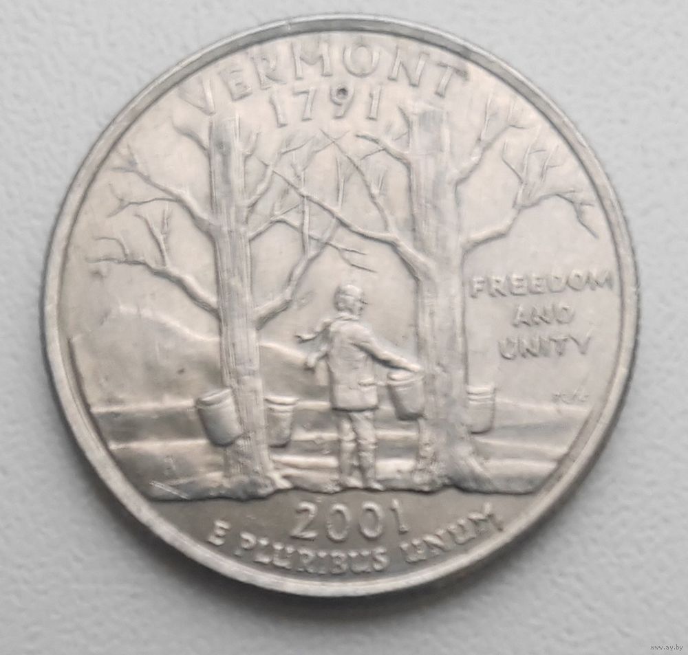 США 1/4 доллара (25 центов) 2001_ KM# 321_Квотер штата Вермонт