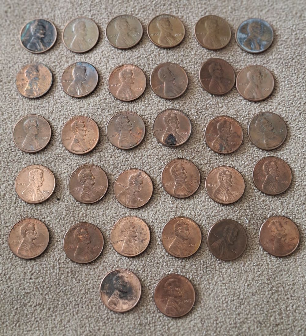 США 1 цент погодовка 32 шт. 2015,2014,2013,2012,2011,2010,2008,2006,2005,2004,2002,2001,1999,1998, 1997,1996,1995,1994,1993,1992,1991,1989,1988,1987,1995,1993,1992,1976, 1975,1974,1966