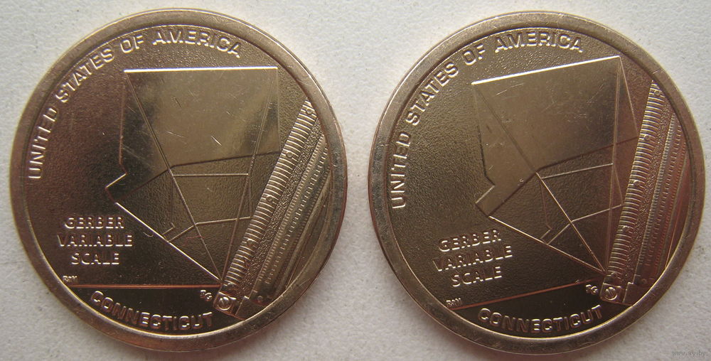 США 1 доллар 2020 г. Инновации. Коннектикут. Переменная шкала Гербера P и D. Цена за 1 шт.
