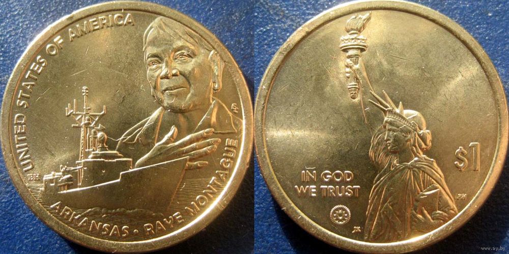 США. 1 доллар 2025. Американские инновации. N26 Арканзас. Рей Джин Монтегю. Минтмарка Р.