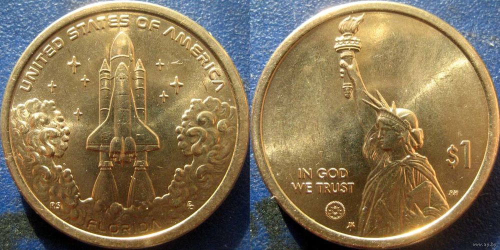 США. 1 доллар 2025. Американские инновации. N28 Флорида. Мыс Канаверал. Минтмарка D.