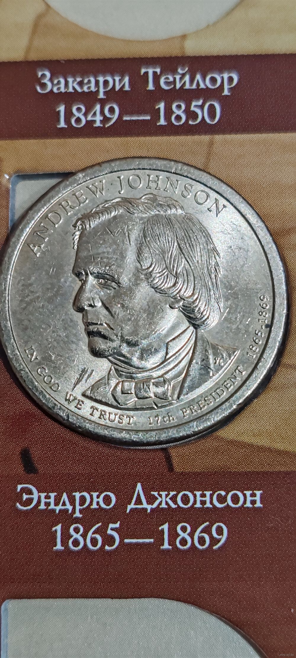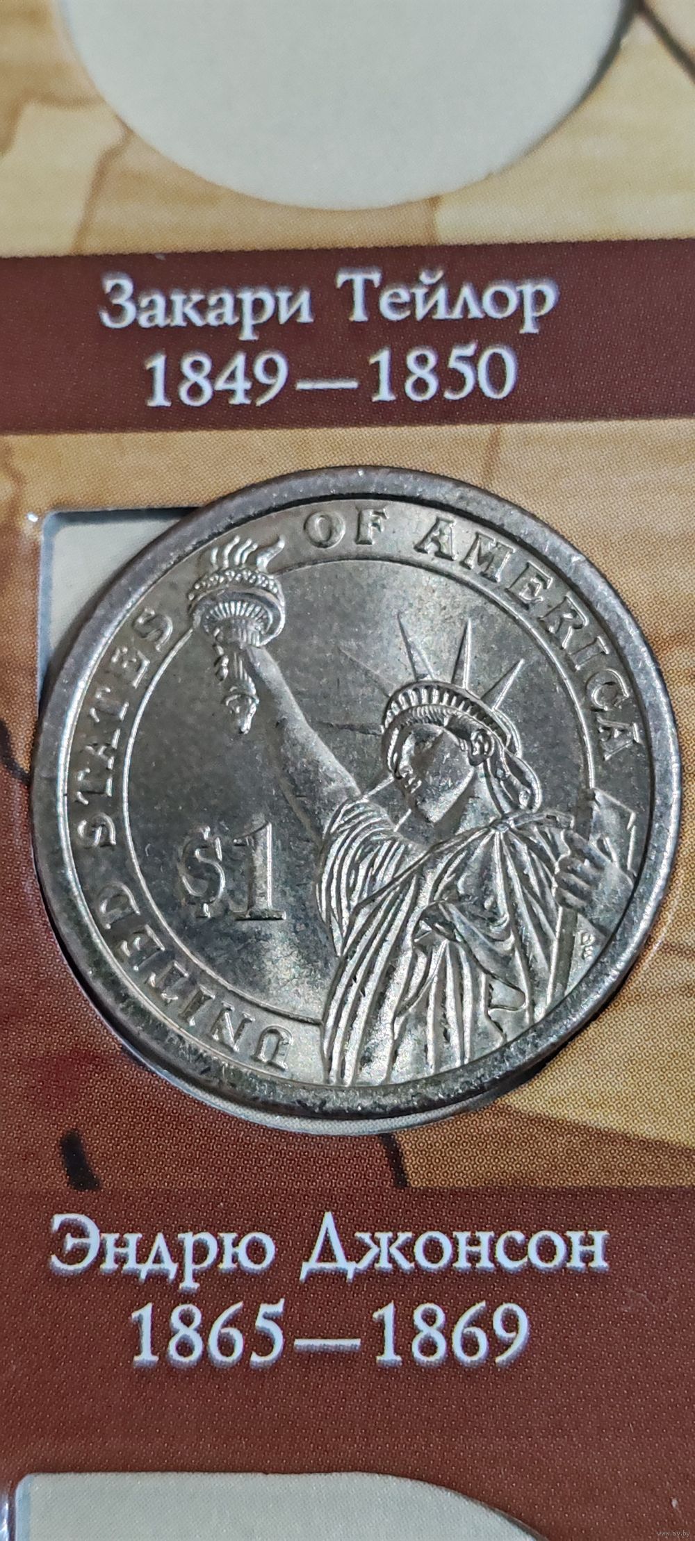 США 1 доллар президент Эндрю Джонсон 1865-1869