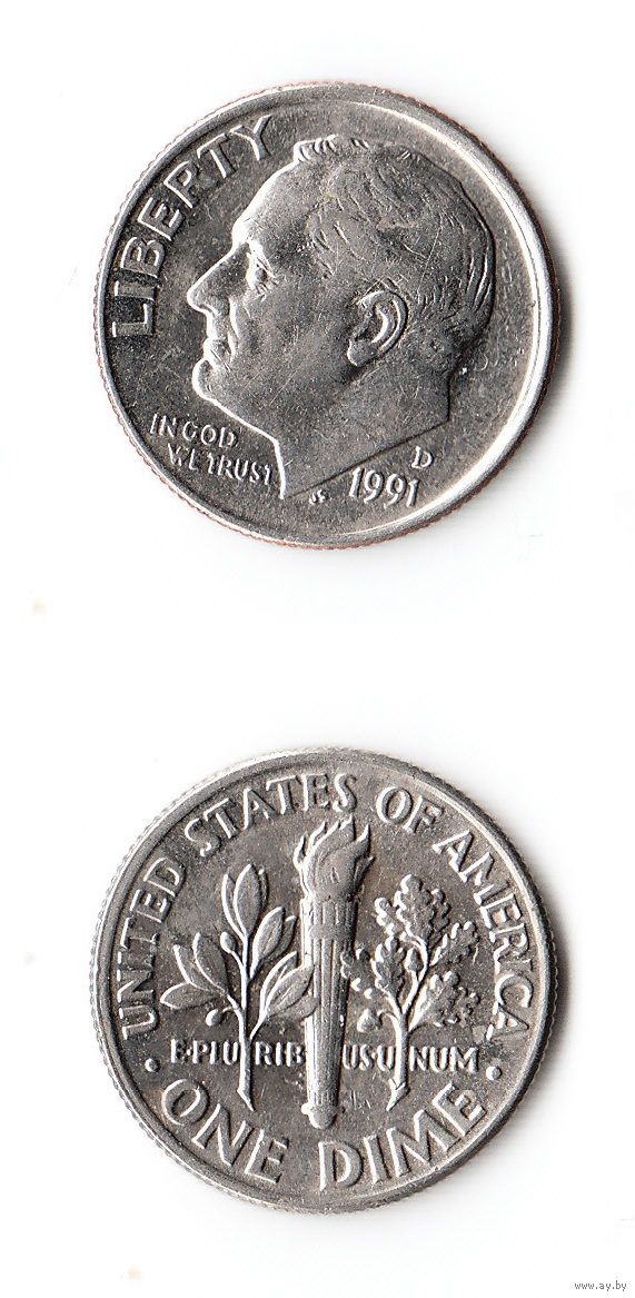 США 10 центов 1991 (D) года