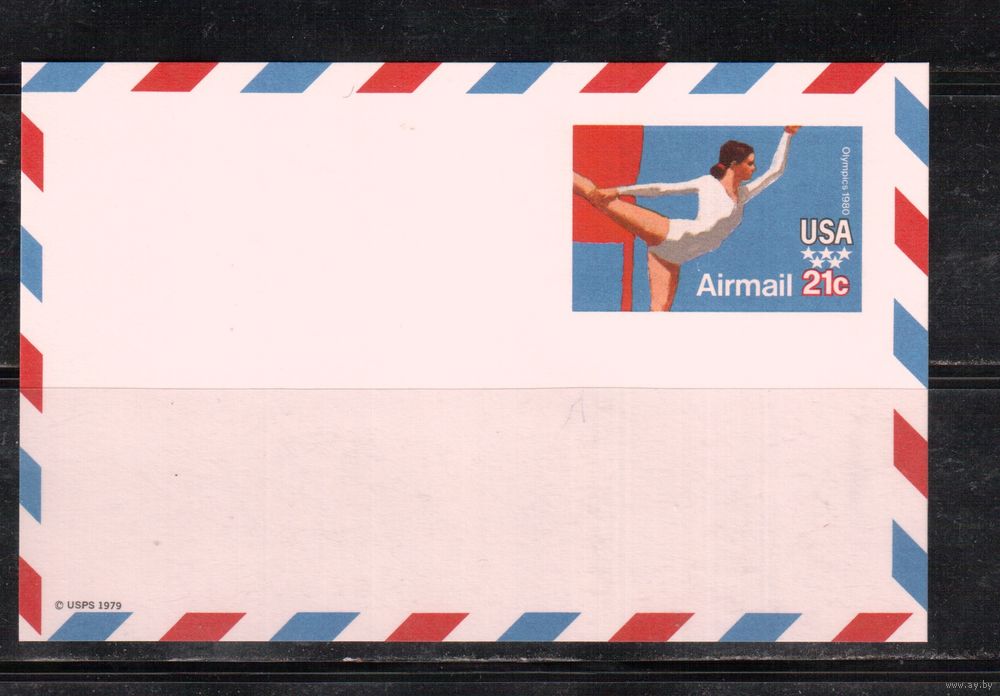 США-1979, Спорт, ОИ-1980, карточка с оригинальной маркой, Авиа