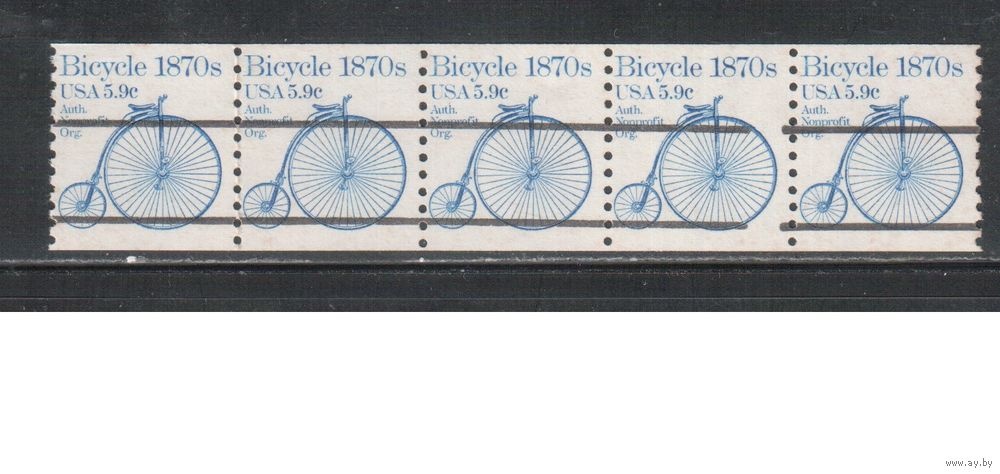 США-1982 (Мих.1529) , ** , Велосипеды(одиночка), полоска 5 м
