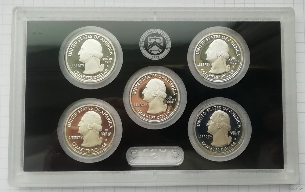 На аверсе монет в центре изображен портрет Джорджа Вашингтона, автор John Flanagan. Вверху выгравирована надпись: «United States of America» (Соединённые Штаты Америки), внизу указан номинал «Quarter Dollar» (Четверть доллара), слева — надпись «Liberty» (Свобода), справа — в три строки: «In God We Trust» (На Бога мы уповаем — девиз США).