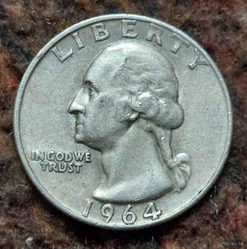 США 25 центов 1964 года, D. AU. Квотер. Джон Дэвид Вашингтон. Серебро! Сторгуй за свою цену, предложи обмен!