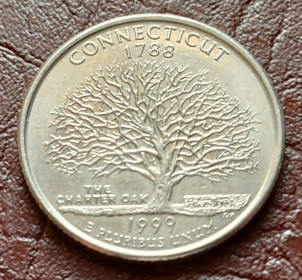 США 25 центов , D 1999 Квотер штата Коннектикут ( 2-2-4 )