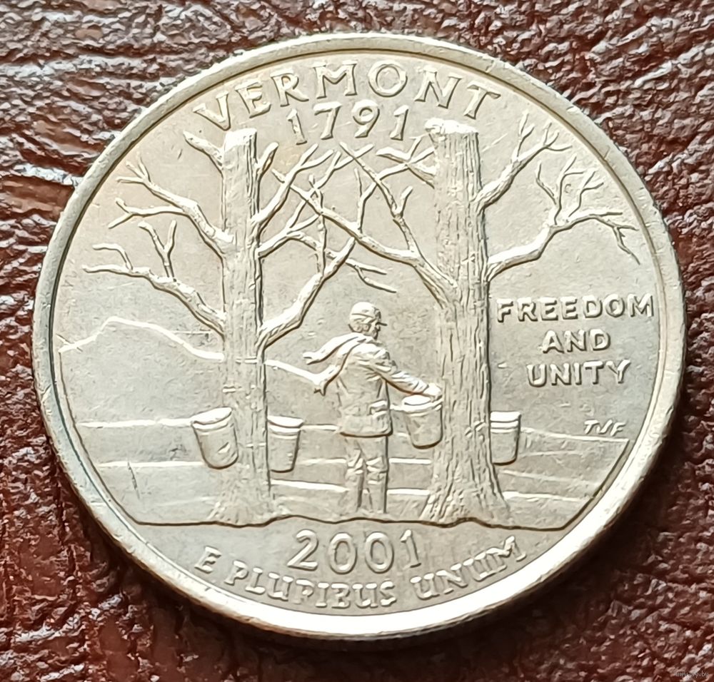 США 25 центов , D 2001 Квотер штата Вермонт ( 2-4-5 )