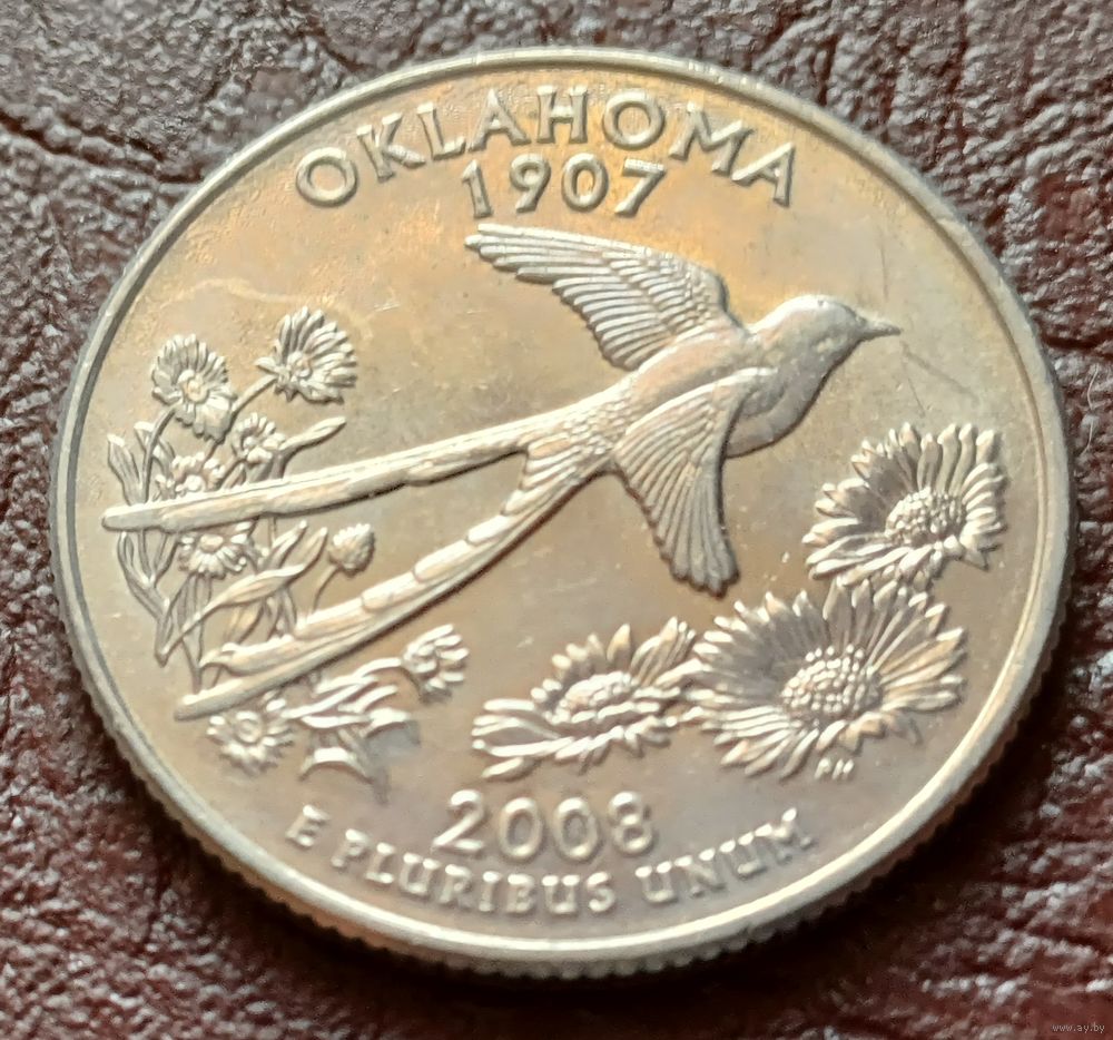 США 25 центов , D 2008 Квотер штата Оклахома ( 2-6-2 )