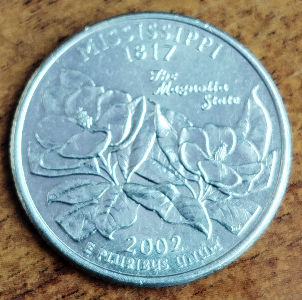 США 25 центов (квотер) 2002 г. D. Миссисипи.