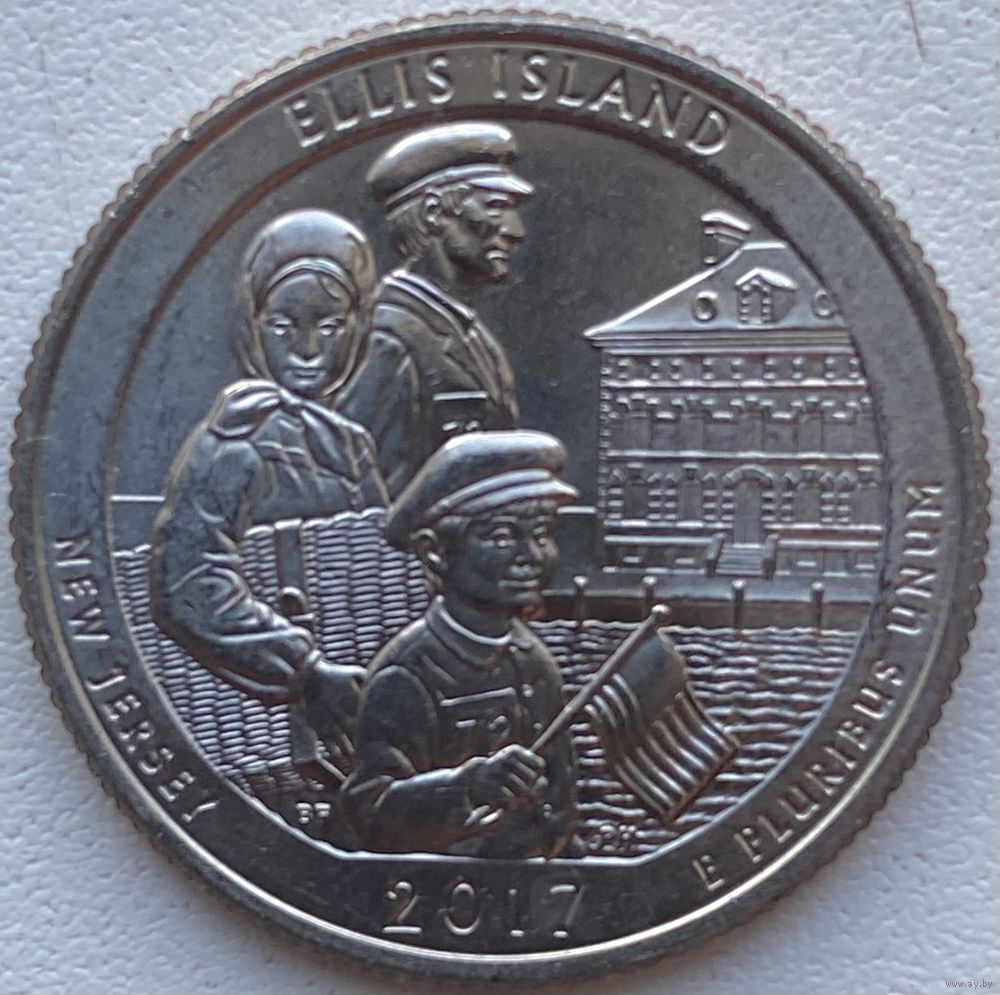 США 25 центов (квотер) 2017 г. D. Национальный монумент острова Эллис
