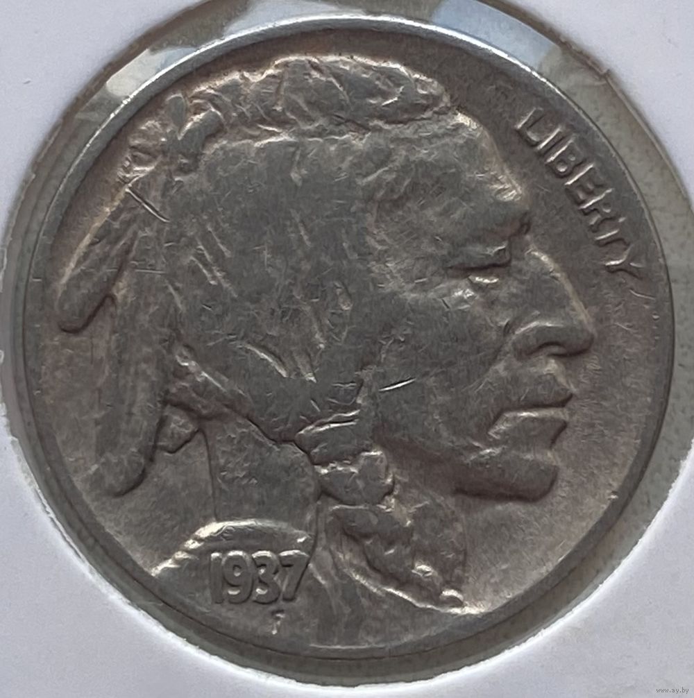 США 5 центов 1937 г. D. Бизон. В холдере