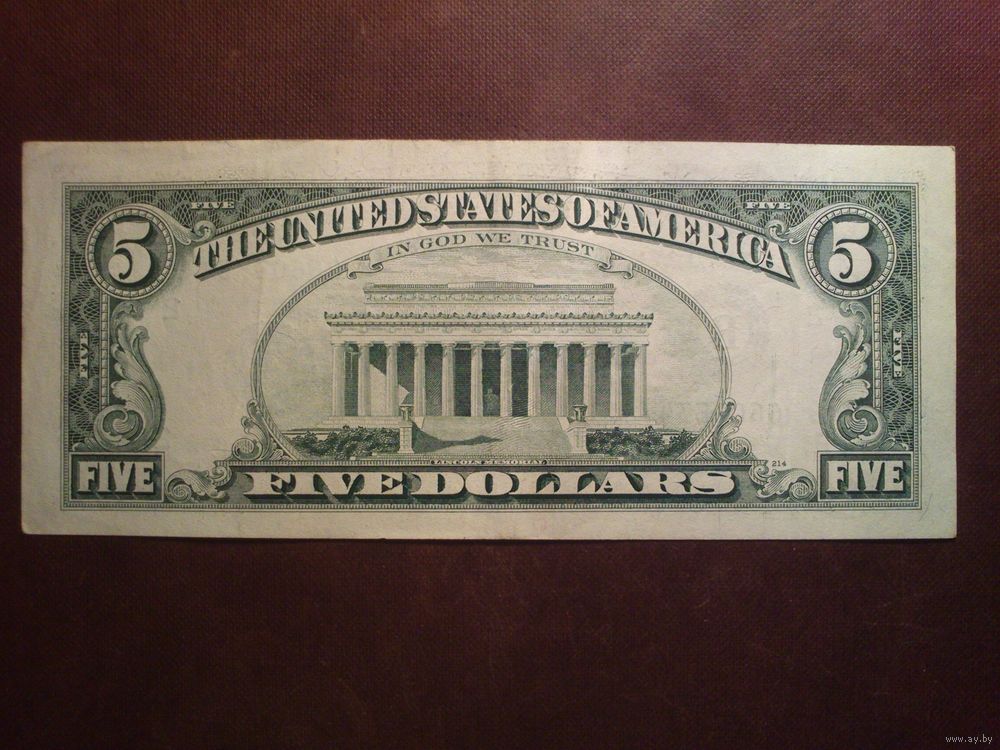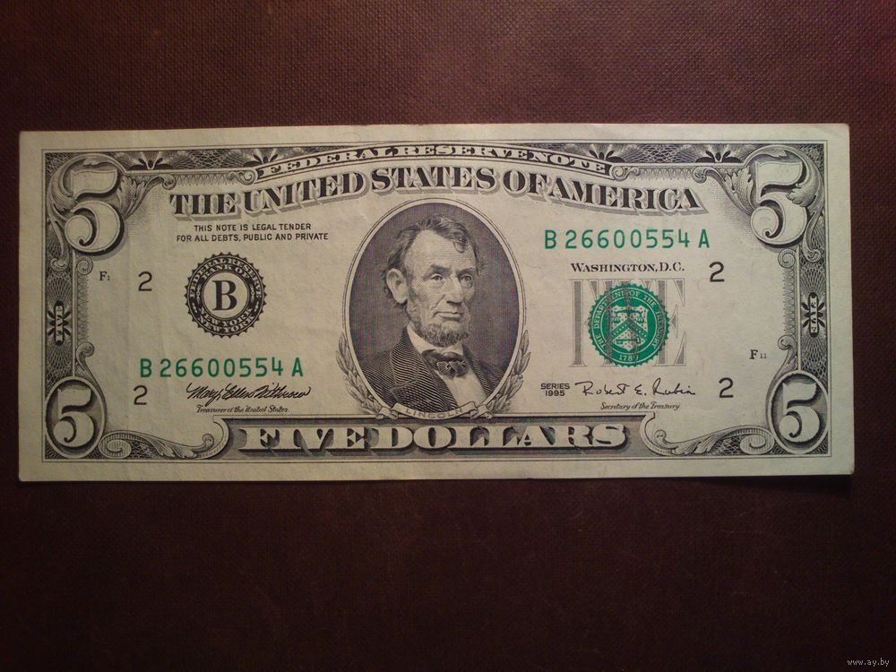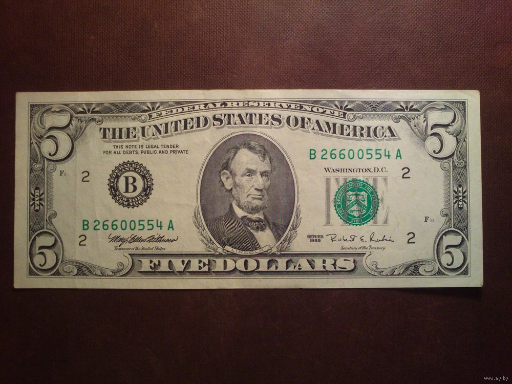 США 5 долларов 1995 г.Серия B-A.Состояние VF.