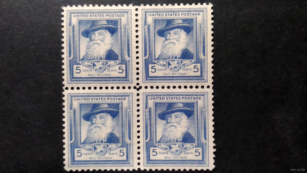 США\а112\1940 скотт 867 Уолт Уитмен америк.поэт MNH кварт. Кц 9.5д