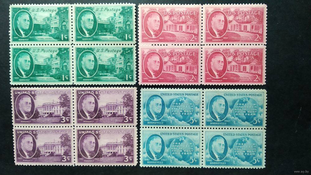 США\а120\ 1945-1946 скотт930-933 президент Рузвельт MNH