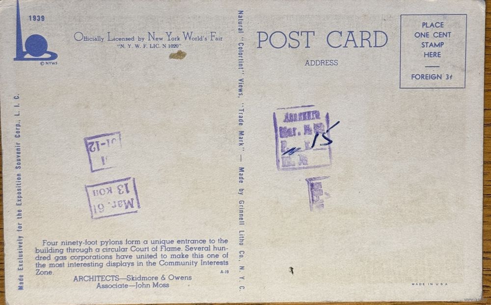 США Америка Нью-йорк Всемирная выставка 1939 New York World's Fair Gas Exhibits Building