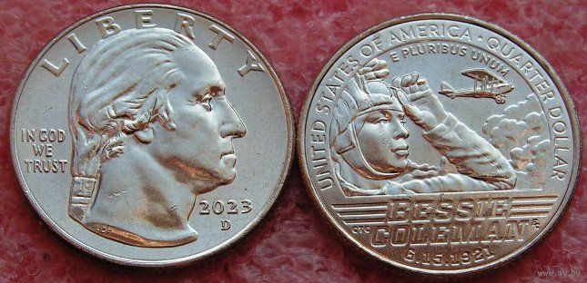 США квотер 2023 г. Выдающиеся женщины - Бесси Колман