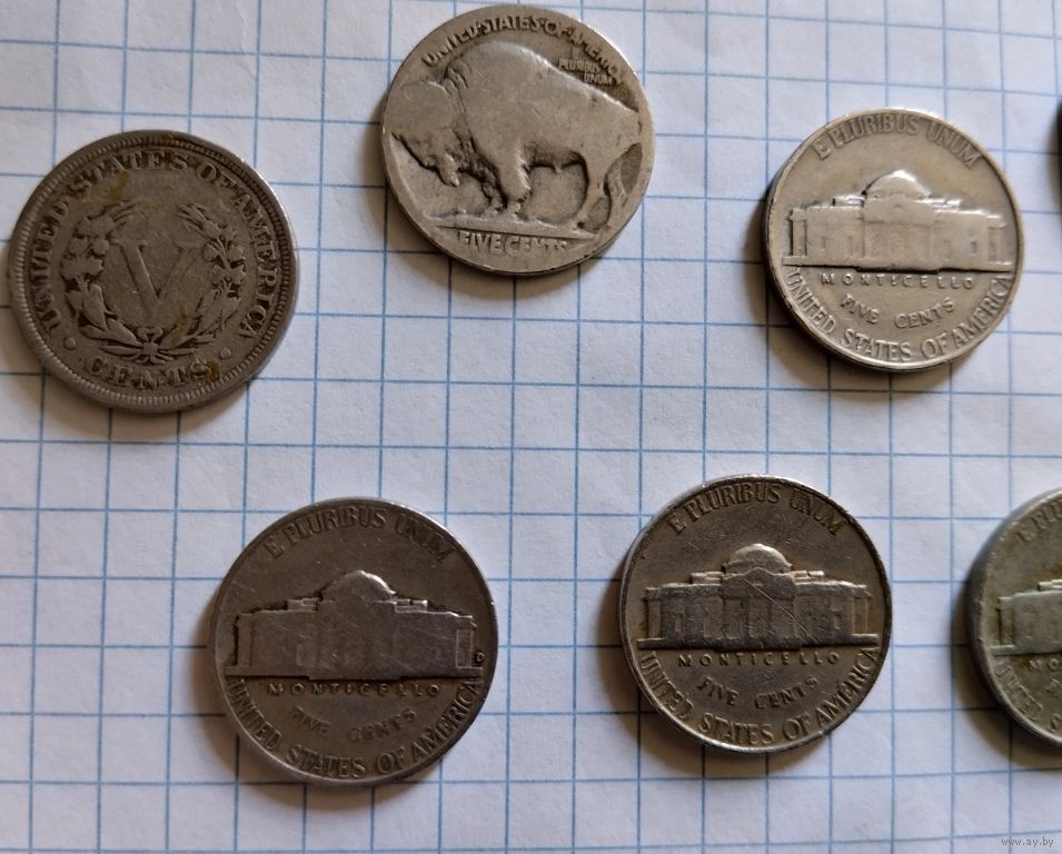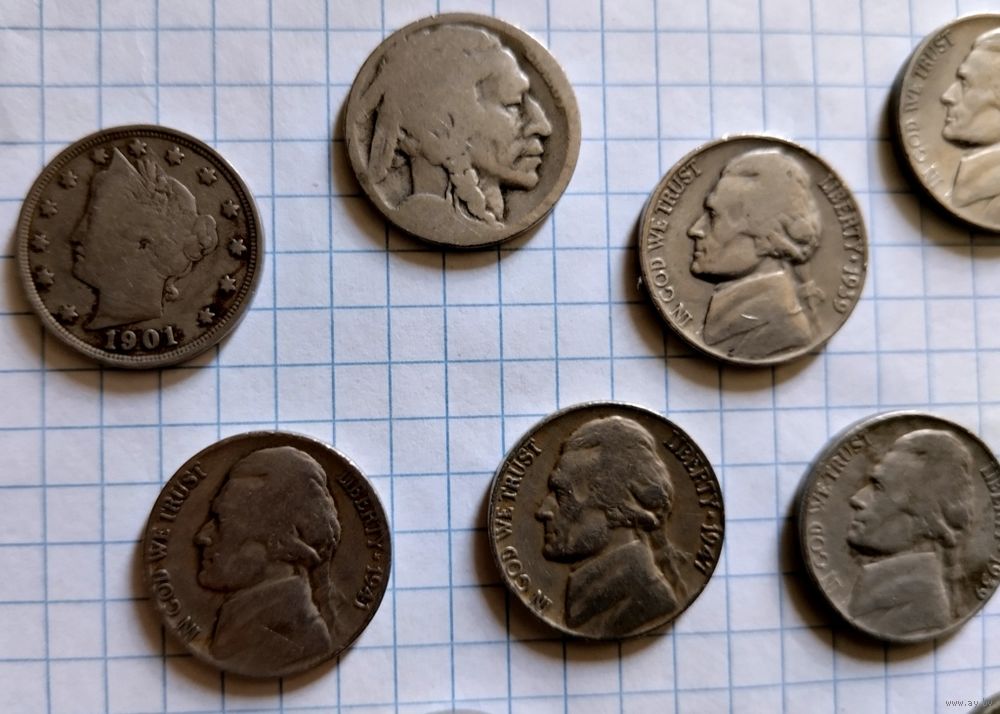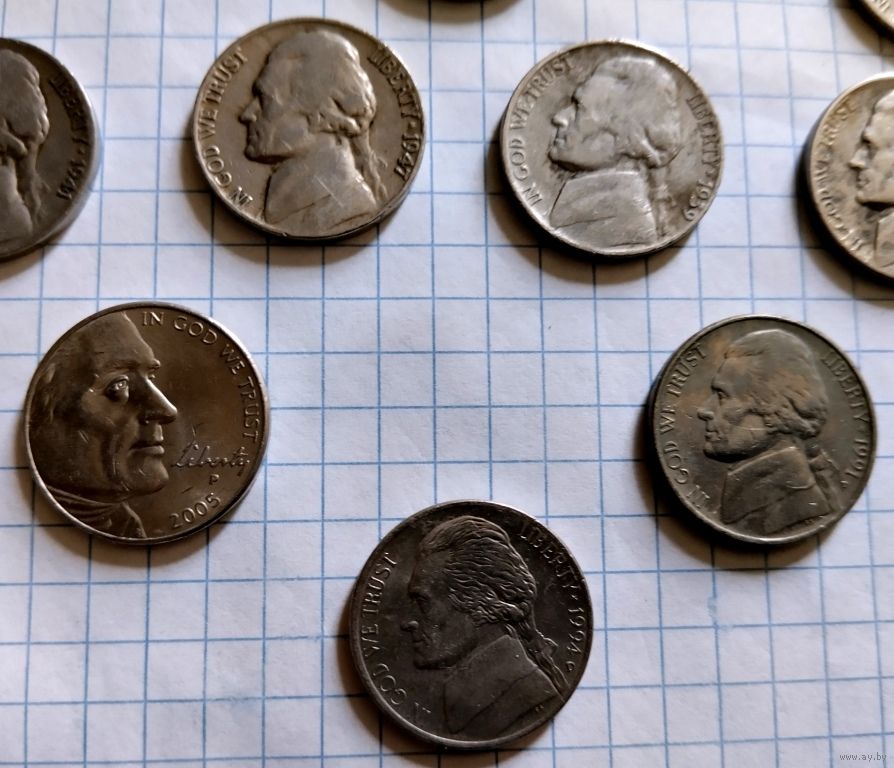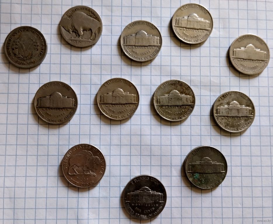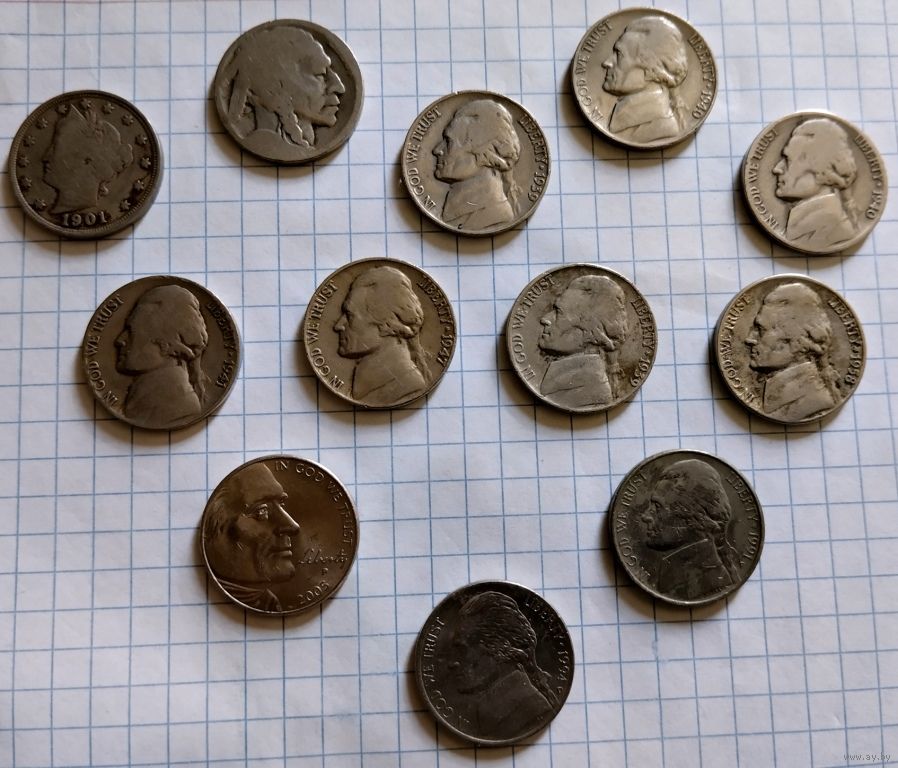 США монеты 5 центов сборный лот 12 монет из обращения. Годы 1901 1935 1939 1940 1941 1947 1958 1991 1994 2005. Состояние на фото.