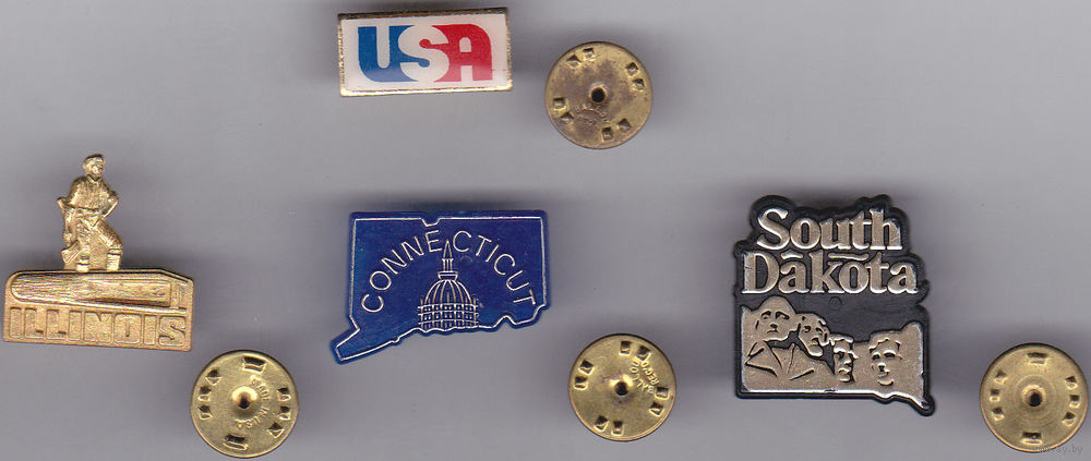 США: штат Иллинойс; штат Коннектикут; штат Южная Дакота (портреты президентов на скалах).