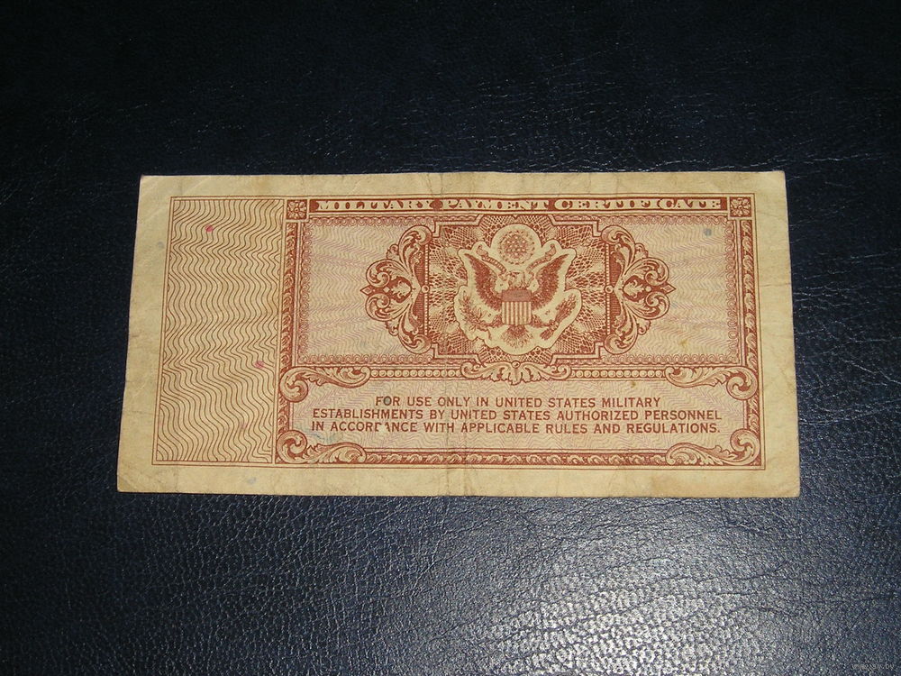 Военные платежные сертификаты использовались персоналом вооруженных сил США в определенных зарубежных странах (например, в Австрии, Германии, Японии и Корее и Вьетнаме) для предотвращения незаконного оборота долларов.