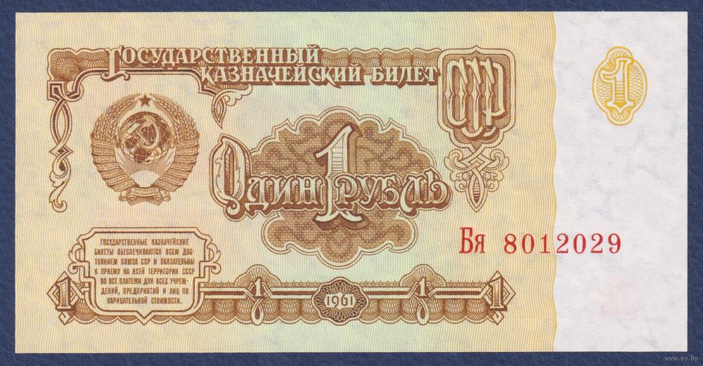 СССР, 1 рубль 1961 г, P-222 (серия Бя, 6-ой выпуск, шрифт 2, клише А), UNC
