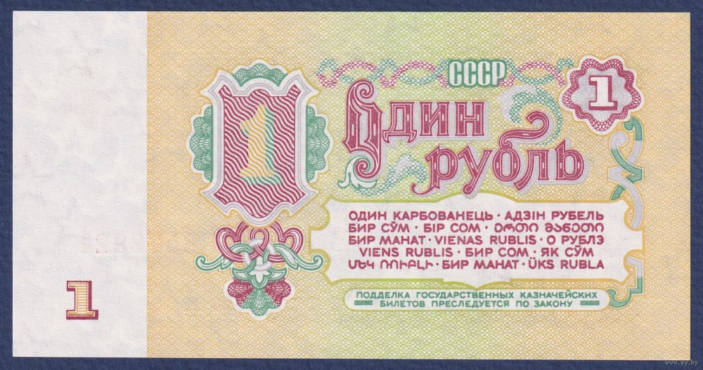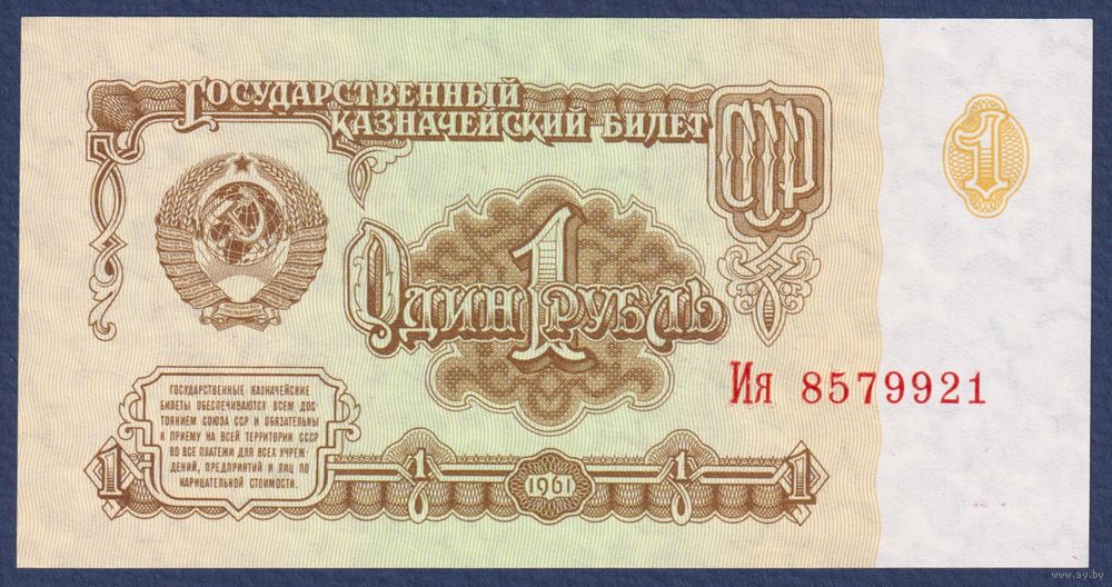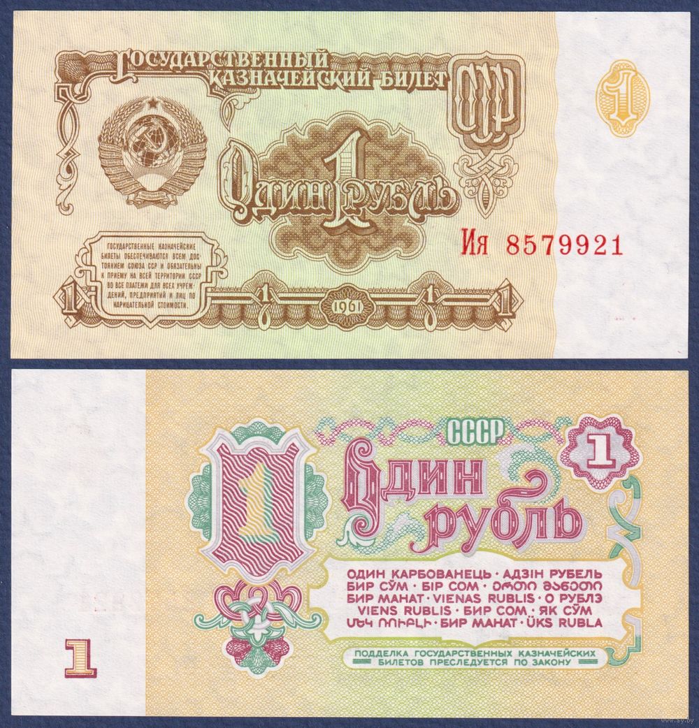 СССР, 1 рубль 1961 г., P-222 (серия Ия, 6-ой выпуск, шрифт 2, клише Б, л.с. офсетная о.с. офсетная), UNC