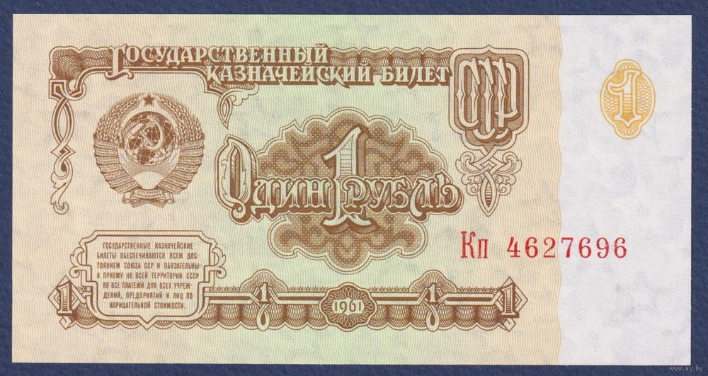 СССР, 1 рубль 1961 г., P-222 (серия Кп, 6-ой выпуск, шрифт 2, клише Б, л.с. офсетная о.с. офсетная), UNC