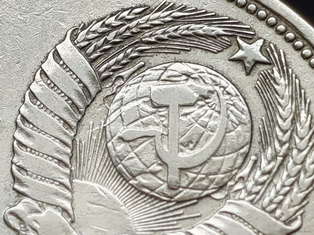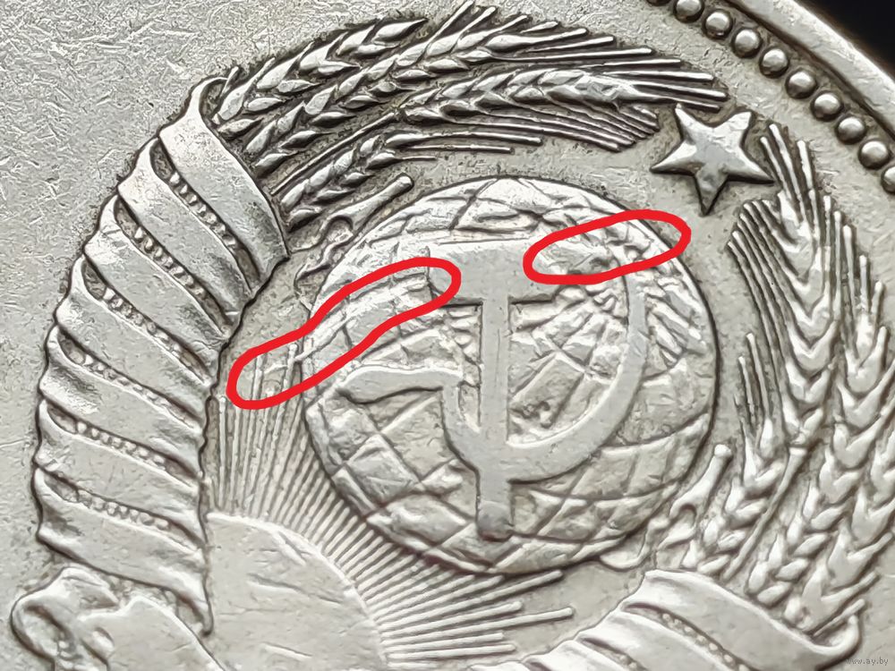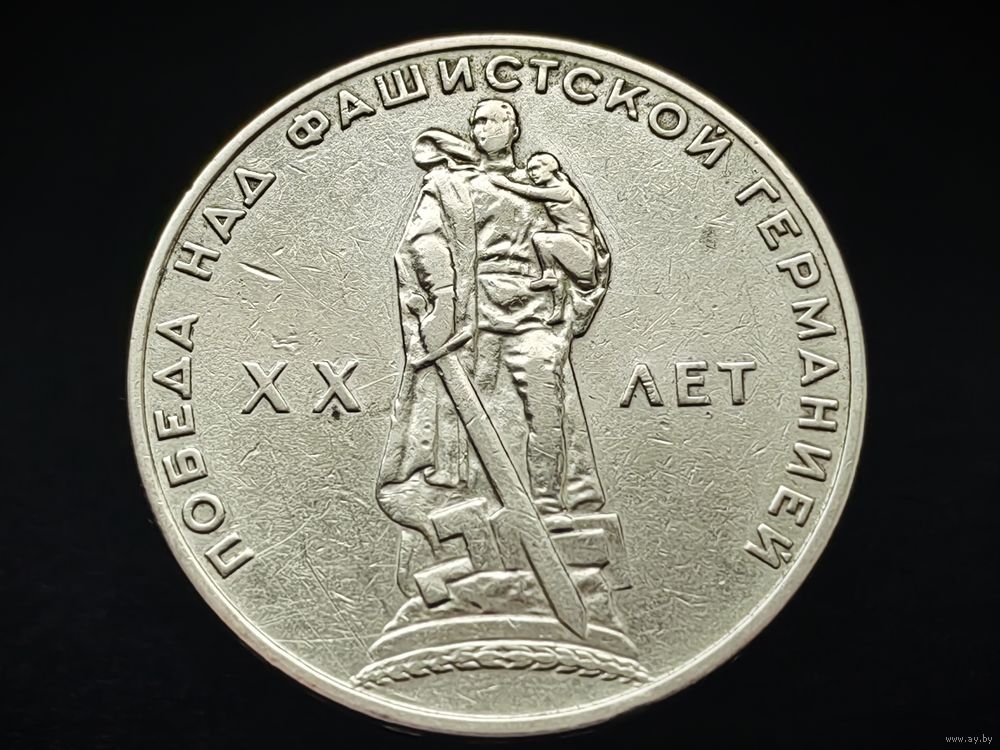 СССР. 1 рубль 1965 - 20 лет Победы над фашистской Германией в Великой Отечественной войне. Брак, раскол штемпеля аверса. (6). Торг.