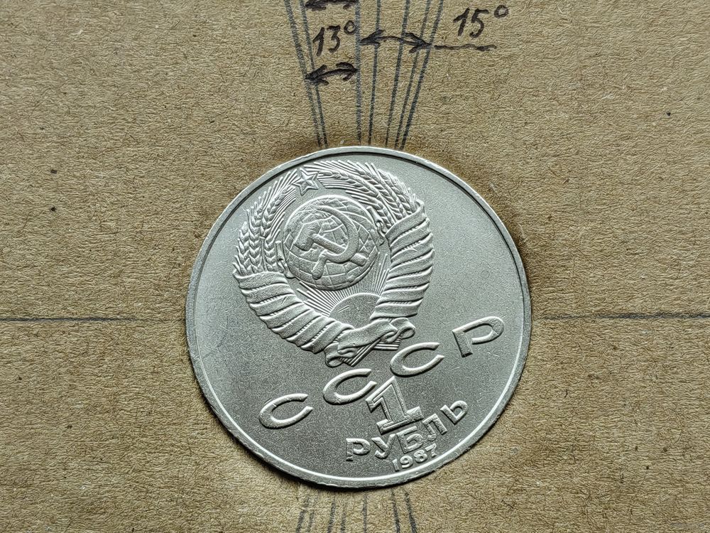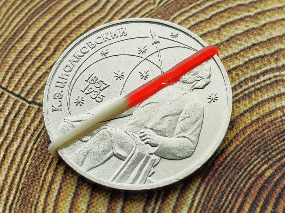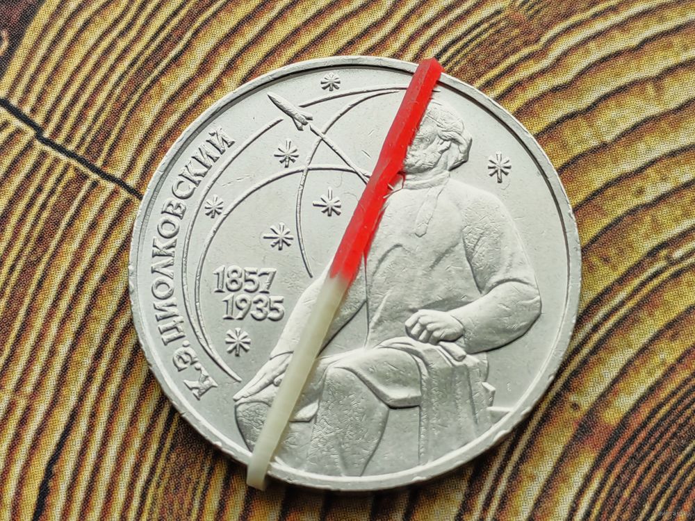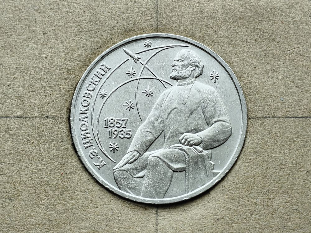 СССР. 1 рубль 1987 - 130 лет со дня рождения основоположника отечественной космонавтики К. Э. Циолковского. Брак, разворот (поворот). (3). Торг.