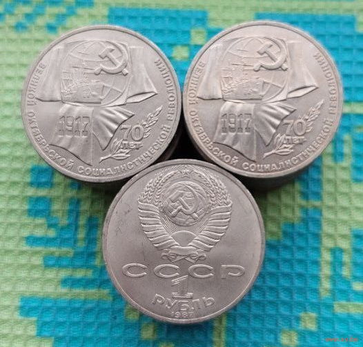 "СССР 1 рубль 1987 года "70 лет Великой Октябрьской революции", UNC. Крейсер Аврора.